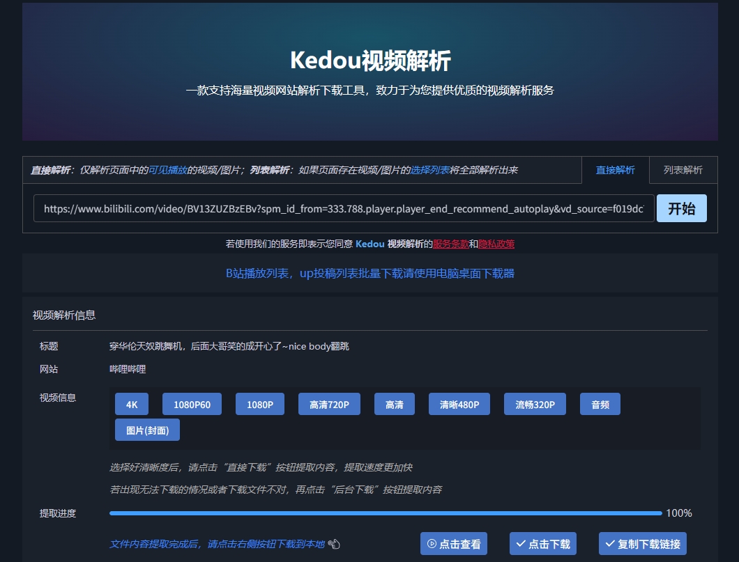 这款 B 站视频下载工具最大的优势在于长期稳定、操作简单。网页版无需安装即可使用,适合偶尔下载一两个视频;桌面客户端提供批量下载功能,适合需要大量下载的场景;移动端 App 则让你可以随时随地下载视频。